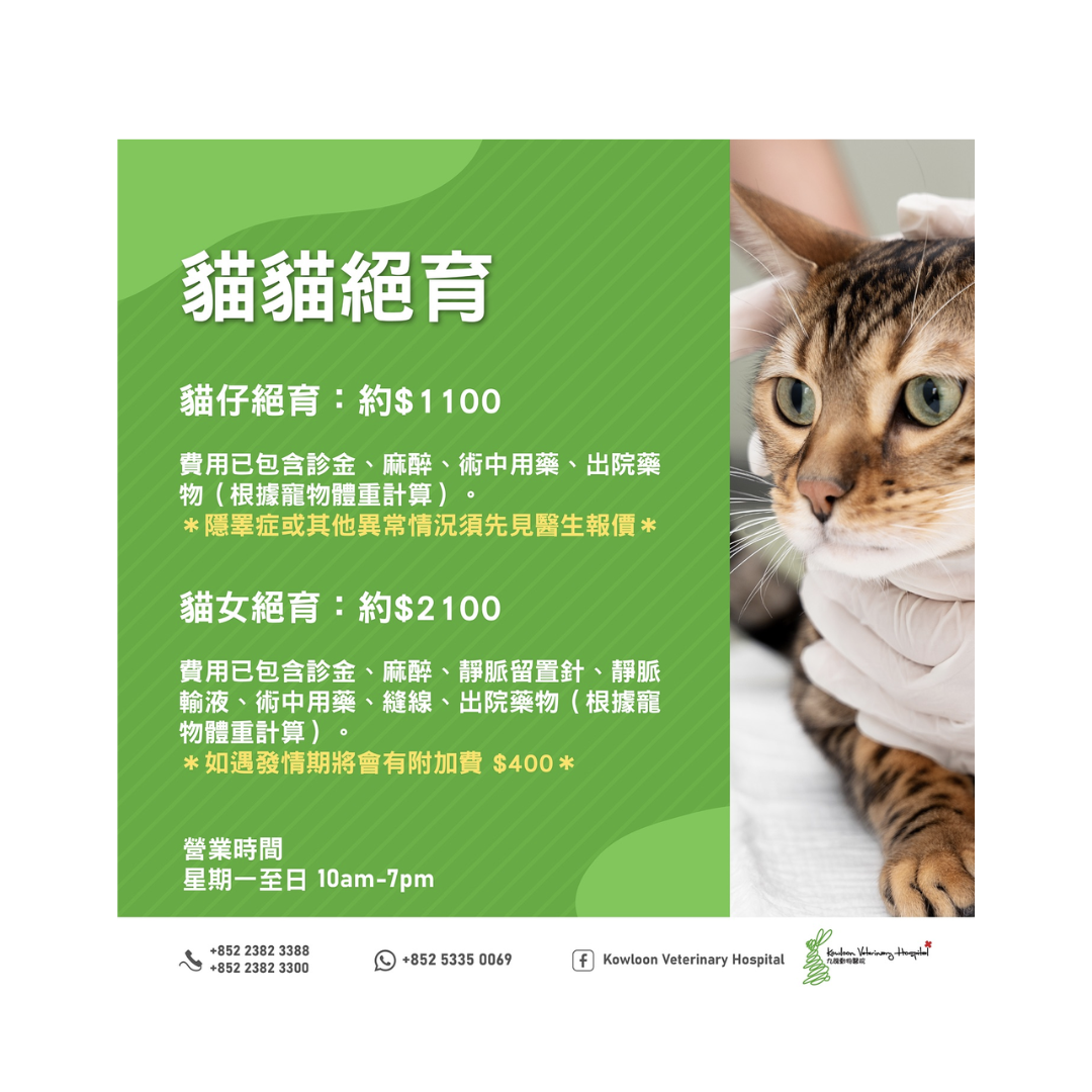 🏥Kowloon Animal Hospital is offering a limited-time spay/neuter promotion: