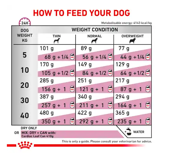 A complete dietetic feed for dogs with cardiovascular diseases.