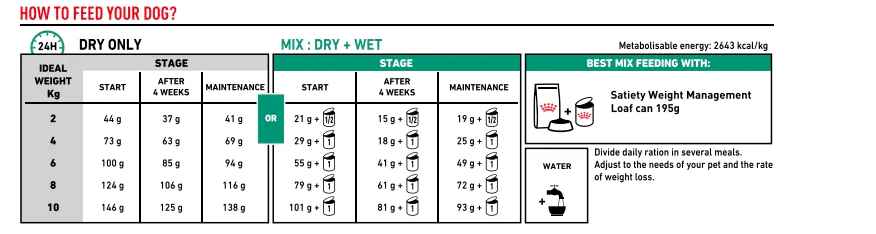 Contains a special blend of fibres that have satietogenic effect on dogs