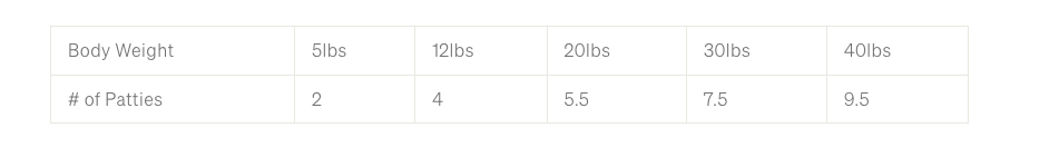 Venison Blend Dinner Patties is formulated to meet the nutritional levels established by the AAFCO Dog Food Nutrient Profiles for All Life Stages.