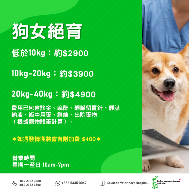 🏥九龍動物醫院推出限時貓狗絕育服務: