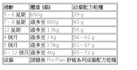 - 主人可放心為心愛的貓貓選擇餵養PURINA PRO PLAN 舒敏系列成貓7+配方,我們量身定制的營養對貓咪的長期健康和福祉產生積極性的影響。 雖然您很著急想看到 PRO PLAN® 在您的貓身上產生的影響,但請等待 7 到 10 天的時間從它們目前的食物逐步過渡到PRO PLAN®。 這使您的貓的消化酶能夠逐漸適應成分和營養成分的變化,幫助正確消化食物並幫助防止胃部不適。 每天,只需減少餵一點以前所吃的食物,多增加餵一點 PRO PLAN®,直到只完全餵食 PRO PLAN®