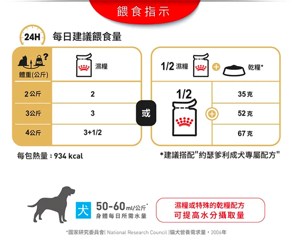 另外為了滿足每隻成犬的個別喜好,ROYAL CANIN® 約瑟爹利成犬(肉塊) 配方還可以作為乾糧加進鬆脆可口的寵物食品顆粒之中;如果你正在考慮要混合餵食的話,只需要照着我們的餵食指引,便能讓你的成犬得到最準確的乾濕糧混餵份量,達至最理想效果。