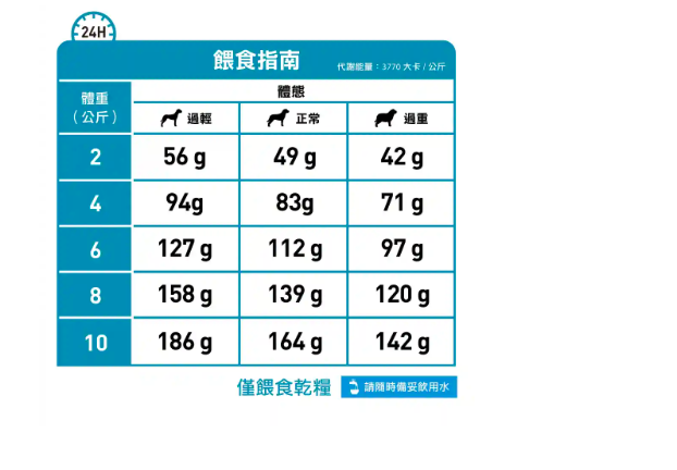 一旦開始出現皮膚病的病灶,就需要給予2個月的處方,以獲得明顯的效果。 對於慢性疾病的犬隻,皮膚病配方可長期使用。建議將每天的攝取量分成2餐 使用。