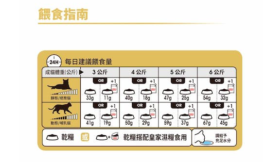 餵食指引:請參考表格。