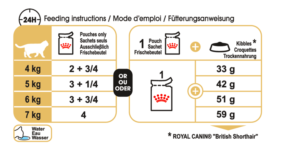 法國皇家英國短毛成年貓配方(肉汁)是專門配製的,考慮到您英國短毛貓的所有營養需求。英國短毛貓通常具有堅固,沉重和肌肉發達的身體。作為天然結實而有力的貓,貓的體重應主要來自肌肉而不是脂肪。因此,正確的營養物質(以及正確的份量)至關重要。法國皇家英國短毛成年貓配方(肉汁)含有適度的能量水平和適當的脂肪含量(3.2%),可有效控制體重。法國皇家英國短毛成年貓配方(肉汁)含有特定的營養平衡,包括多種維生素,不僅可以維持健康和營養豐富的皮毛,而且還可以支撐和維持健康的皮膚。為了滿足每隻貓的個人喜好,法國皇家英國短毛成年貓配方(肉汁)也可以作為乾糧,以鬆脆可口的粗磨食物為特色。如果您正在考慮混合餵養,只需遵循我們的餵養指南,以確保您的貓得到準確量的乾濕食品,以實現最佳效益。