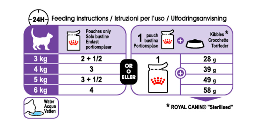 對貓進行絕育後,與沒有經過打獵或絕育的貓相比,它們的營養需求發生了變化。進行滅菌處理後,您的貓的能量需求就會降低,並且活動可能會減少。法國皇家成年貓絕育配方(啫喱),具有可控的能量含量和適度的脂肪含量,有助於支撐和保持健康的體重;特別是當以準確的每日定量食用時。法國皇家成年貓絕育配方(啫喱)符合成年貓本能地偏愛的最佳營養狀況。這樣可以確保您的貓容易消耗其維持良好整體健康所需的營養。法國皇家成年貓絕育配方(啫喱)還含有經過精心考慮的礦物質平衡,有助於維持貓的泌尿系統的健康。為了滿足每隻貓的個人喜好,法國皇家成年貓絕育配方(啫喱)還提供美味的肉汁,柔軟而美味的麵包,或作為美味的鬆脆粗糧的乾糧。如果您正在考慮混合餵養,只需遵循我們的餵養指南,以確保您的貓得到準確量的乾濕食品,以實現最佳效益。