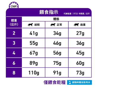 餵食指引:請參考表格。