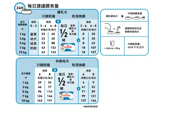 營養成分適合母犬懷孕末期及哺乳期所需的極高能量需求