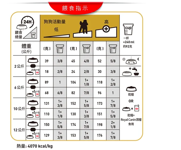 餵食指引:請參考表格。