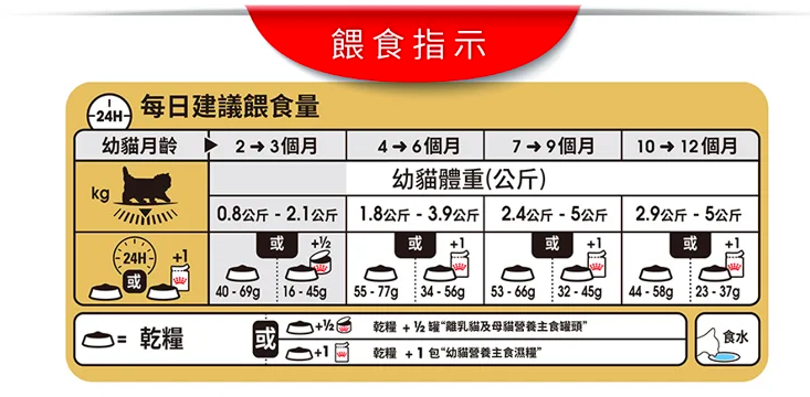 餵食指引:請參考表格。