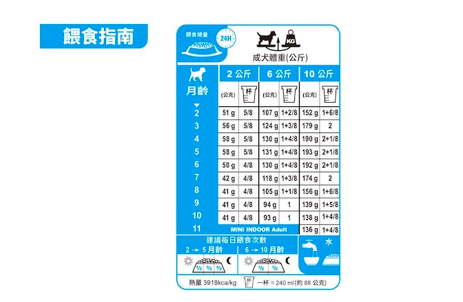 餵食指引:請參考表格。