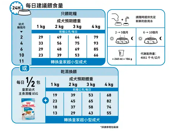 專為10個月或以下的超小型成犬(成年體重4公斤或以下)而設,滿足成長期的營養需求。
