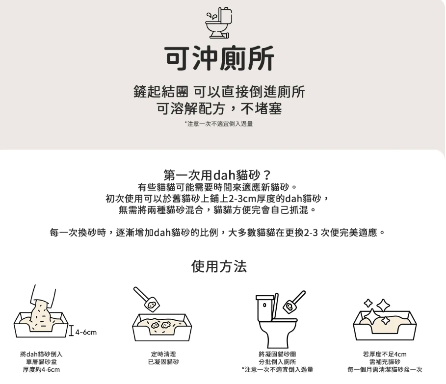 *單次沖入廁所貓砂不宜過量,以免堵塞