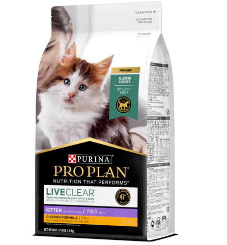 PURINA PRO PLAN 舒敏系列幼貓配方適合5週至1歲的幼貓食用。此系列可顯著減少貓毛和皮屑中的主要致敏原,告別敏感帶來的痛苦,主人就可以親貓零距離。