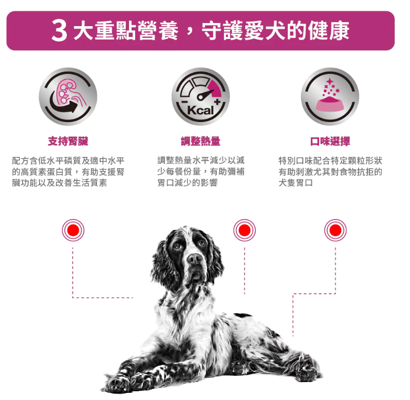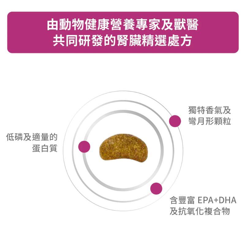 配方含低水平磷質及適中水平的高質素蛋白質,有助支援腎臟功能以及改善生活質素
